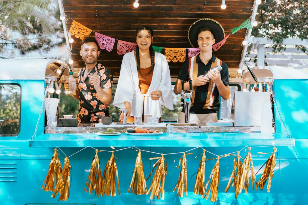 Nasze stoiska i mobilne bary są estetyczne, czyste i wpasowują się w charakter każdego wydarzenia, od swobodnych pikników po eleganckie eventy firmowe. Zapewniamy także niezbędną infrastrukturę, taką jak namioty, zadaszenia, stoły i sprzęt chłodniczy.